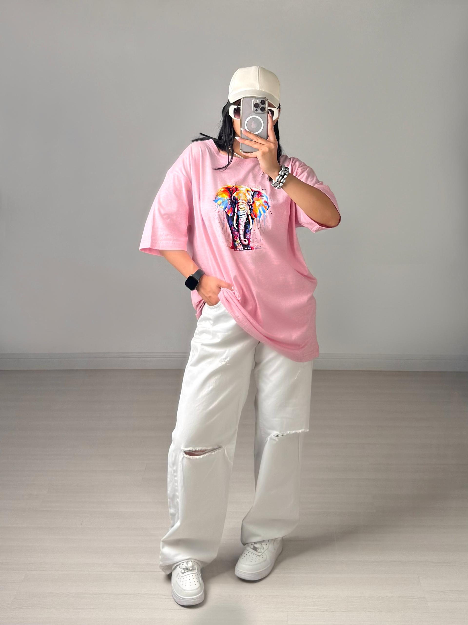 تیشرت اوورسایز ELEPHEN صورتی